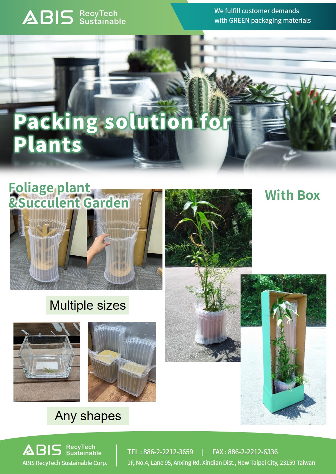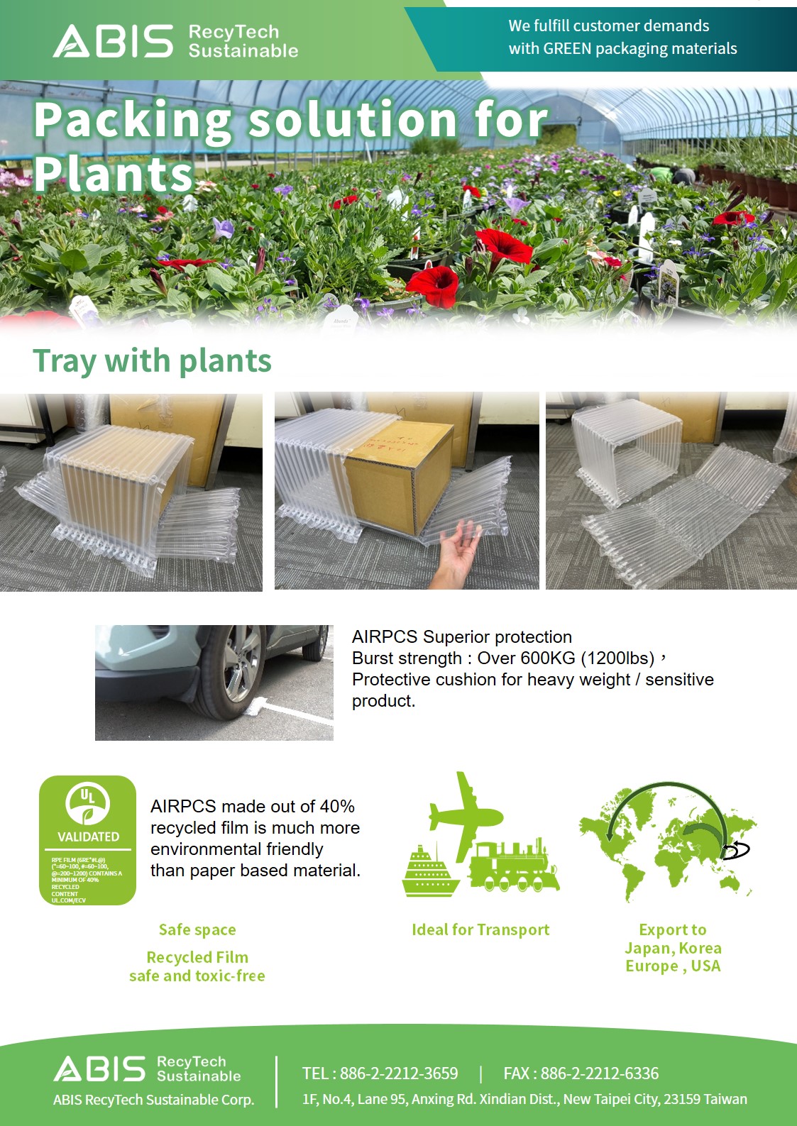 合箱、設計、製作、運送一條龍包辦,並擁有國際UL環保氣柱