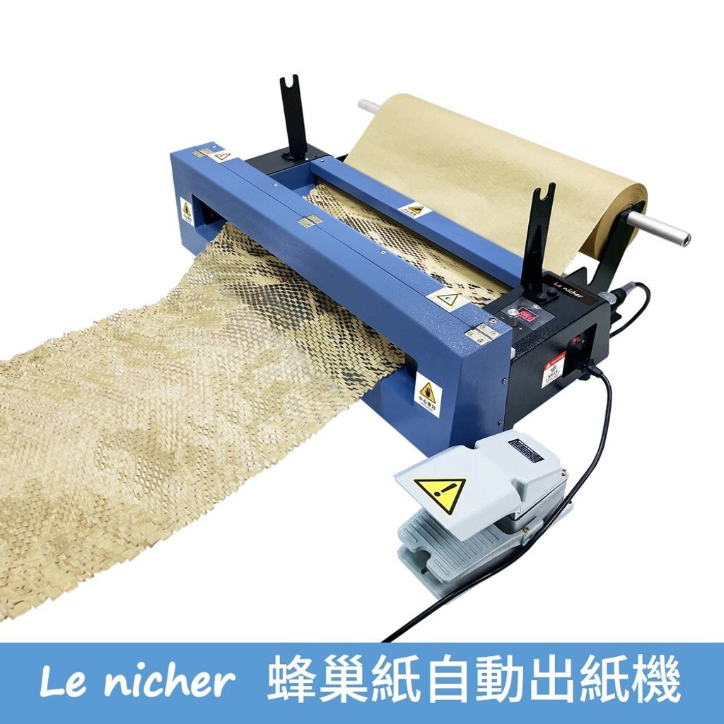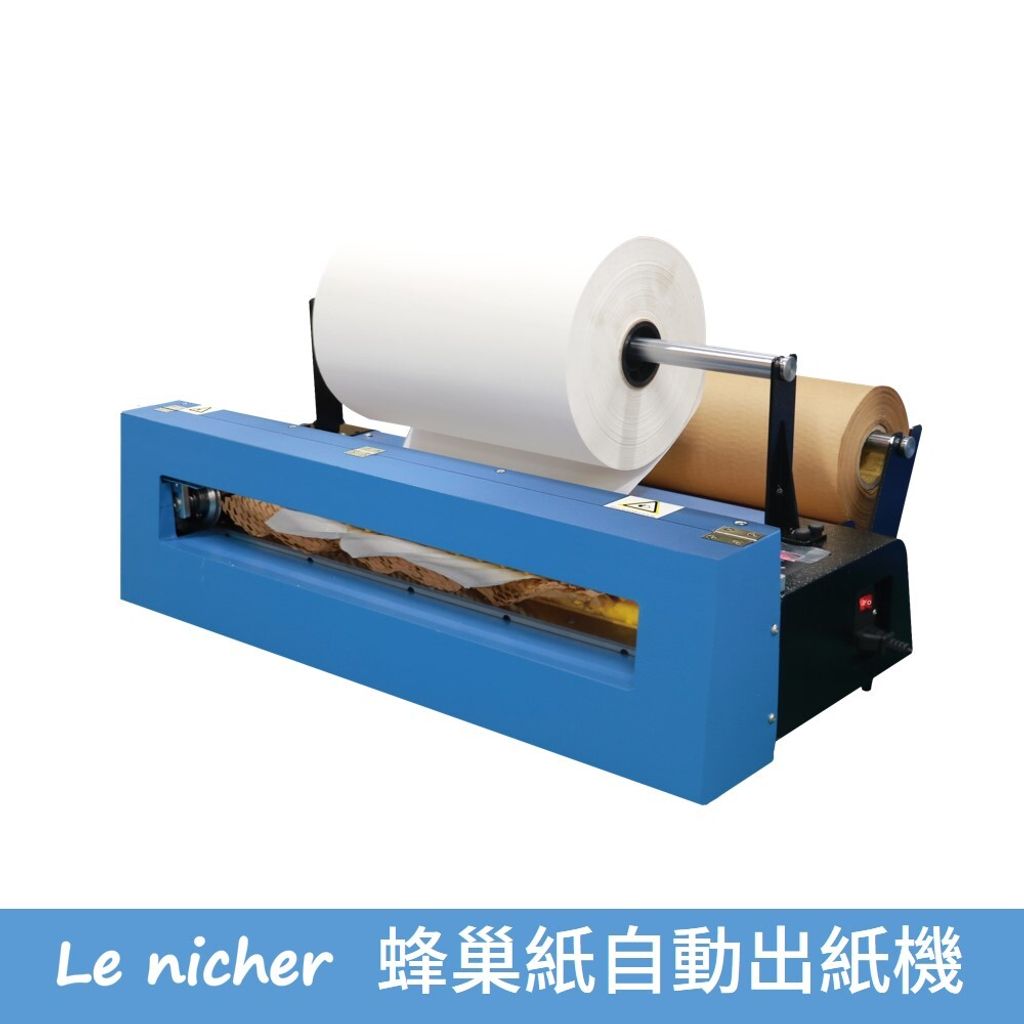 - 適用於蜂巢紙捲(W500 or W300mm),可同時安裝蜂巢紙及白報紙包裝紙捲